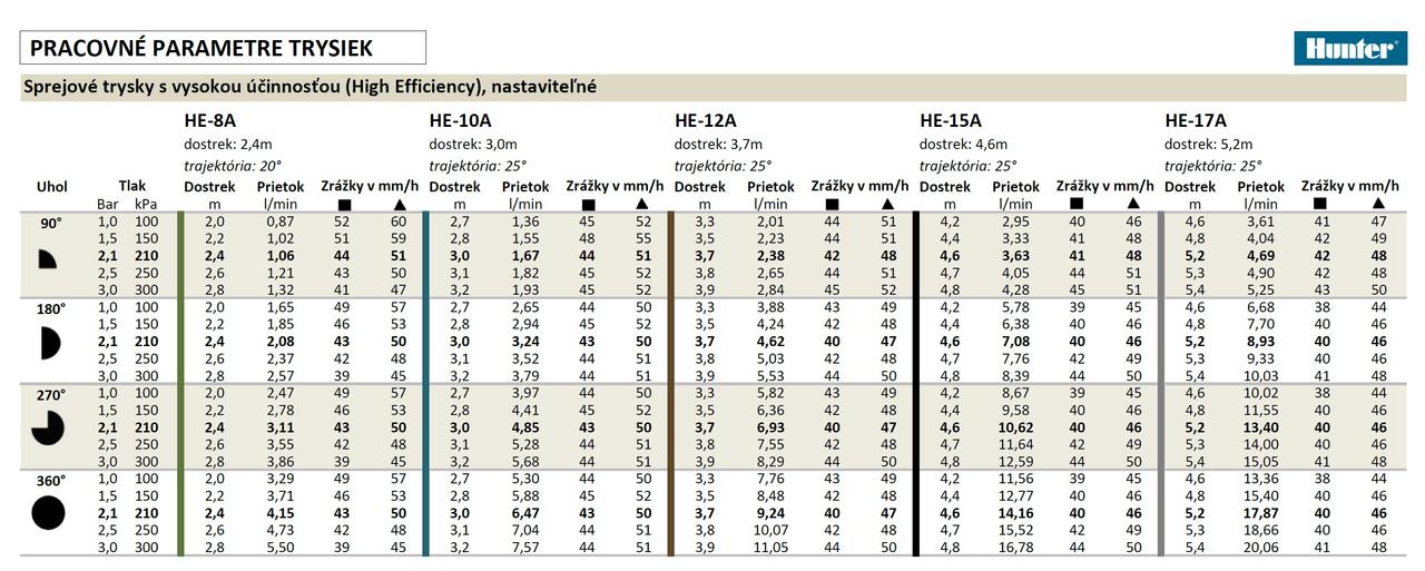 Sprejová tryska Hunter 10A-HE: Efektívne zavlažovanie s vysokou uniformitou