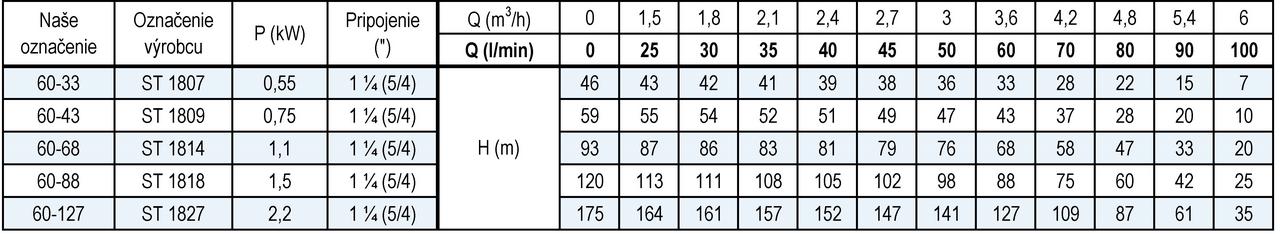 - Optimálny výtlak: 68 m