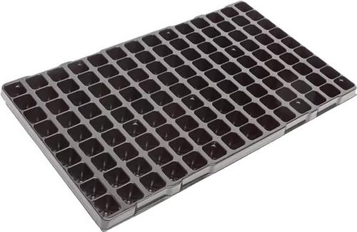 Čierne výsevné multipláto Modiform 2720 Paper plug play 126 pre predpestovanie rastlín má 126 hranatých buniek s objemom 25 ml. Každá bunka je opatrená na dne jednou dierou pre odtok vody s priemerom 11 mm.